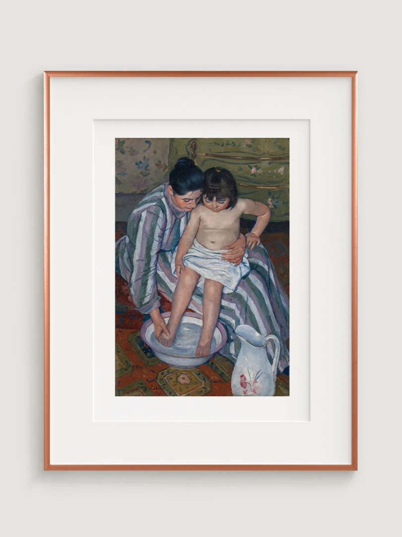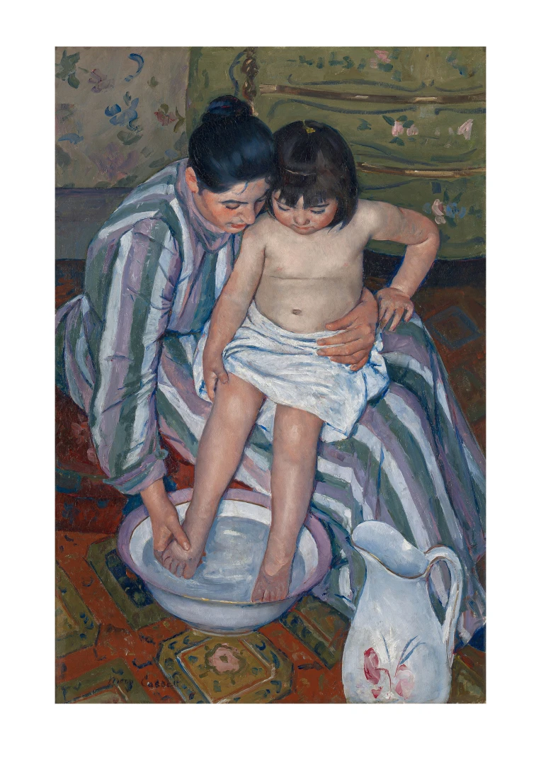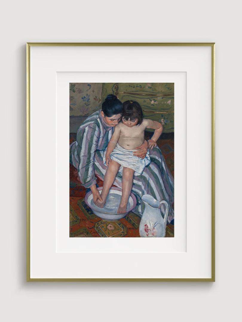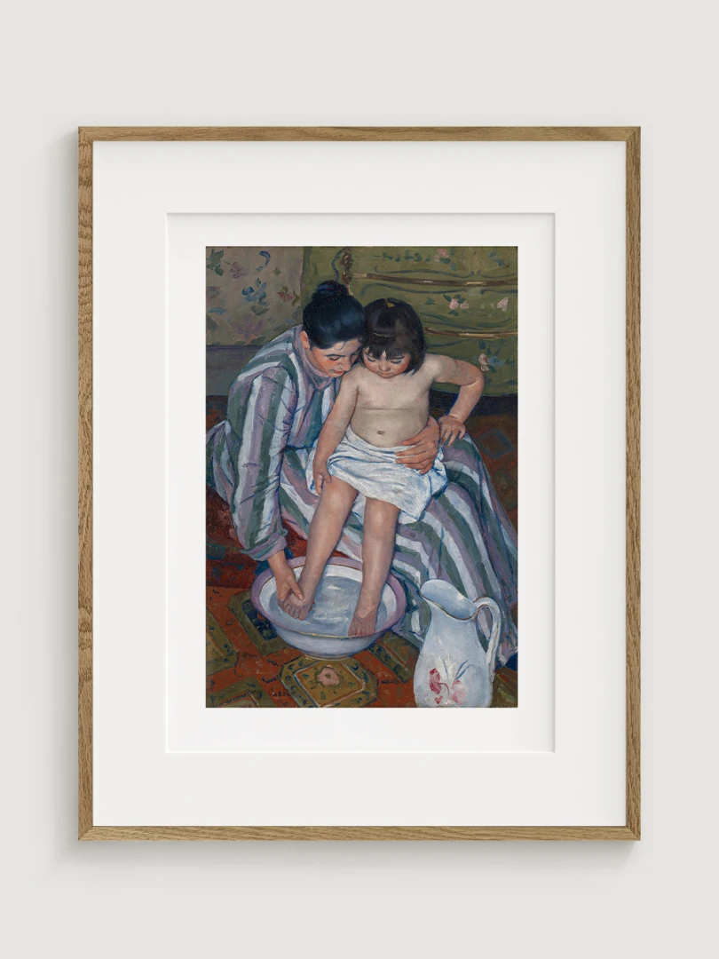 „Dětská koupel“ je příkladem Cassattové mistrovství v zobrazování každodenních okamžiků se silným emocionálním nábojem. Umělecký print tohoto obrazu je dokonalým doplňkem vkusně zařízených dětských pokojů, ale také obývacích pokojů nebo koupelen, a vnese do vašeho domova nejen krásu, ale také nádech historie a jemnosti, které jsou pro Cassattové tvorbu typické.