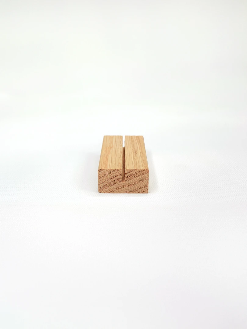 Dodejte svému interiéru elegantní a přirozený dotek s naším minimalistickým držákem na fotografie a karty. Tento držák je vyroben z kvalitního masivního dubového dřeva, které je známé svojí pevností a nádhernou texturou. Rozměry drážky: 1,5 x 9 mm – ideální pro fotografie, vizitky, jmenovky či malá umělecká díla. Tento držák je nejen praktický, ale také dekorativní. Ať už jej umístíte na pracovní stůl, poličku nebo noční stolek, vždy bude poutat pozornost svou jednoduchostí a elegancí.