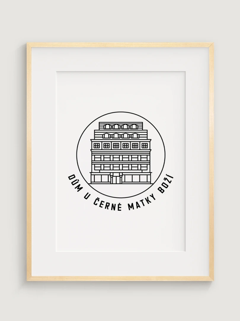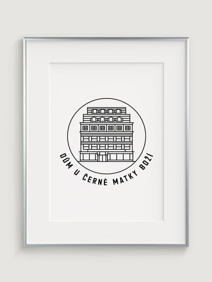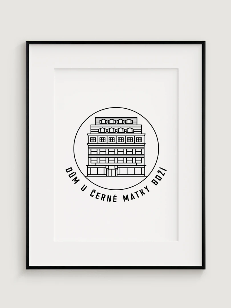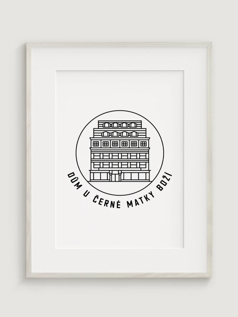 Tento print představuje stylizované, minimalistické zobrazení Domu U Černé Matky Boží v Praze, budovy, která zaujme svou kubistickou krásou a historickým významem. Vytvořen jemnou černou linkovou kresbou na kvalitním papíře, tato ilustrace zachycuje detailní linie a formy budovy v nadčasovém a elegantním stylu.