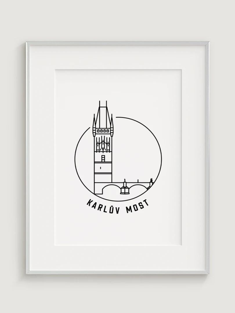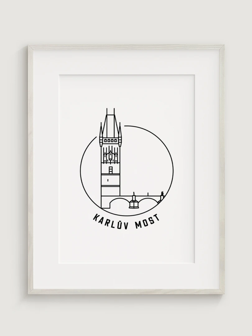 Tento print představuje stylizované, minimalistické zobrazení Karlova mostu v Praze, jednoho z nejkrásnějších a nejvýznamnějších architektonických skvostů města. Vytvořen jemnou černou linkovou kresbou na kvalitním papíře, tato ilustrace zachycuje detailní linie mostu a jeho soch v nadčasovém a elegantním stylu.