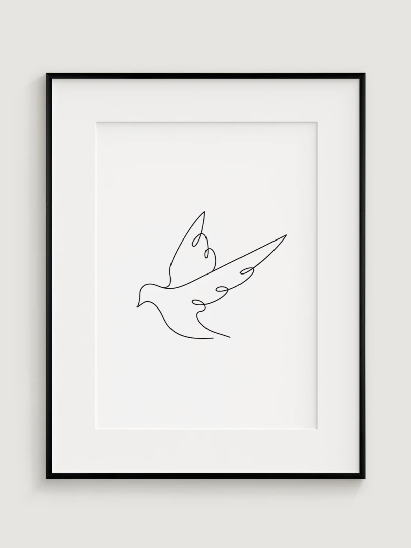 Tento minimalistický motiv přináší pocit čistoty, klidu a svobody a je vhodný pro ty, kteří oceňují krásu v jednoduchosti a jemnou symboliku míru.
