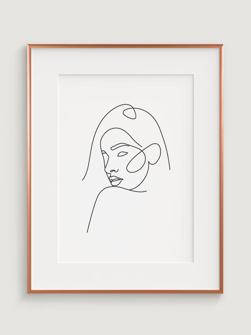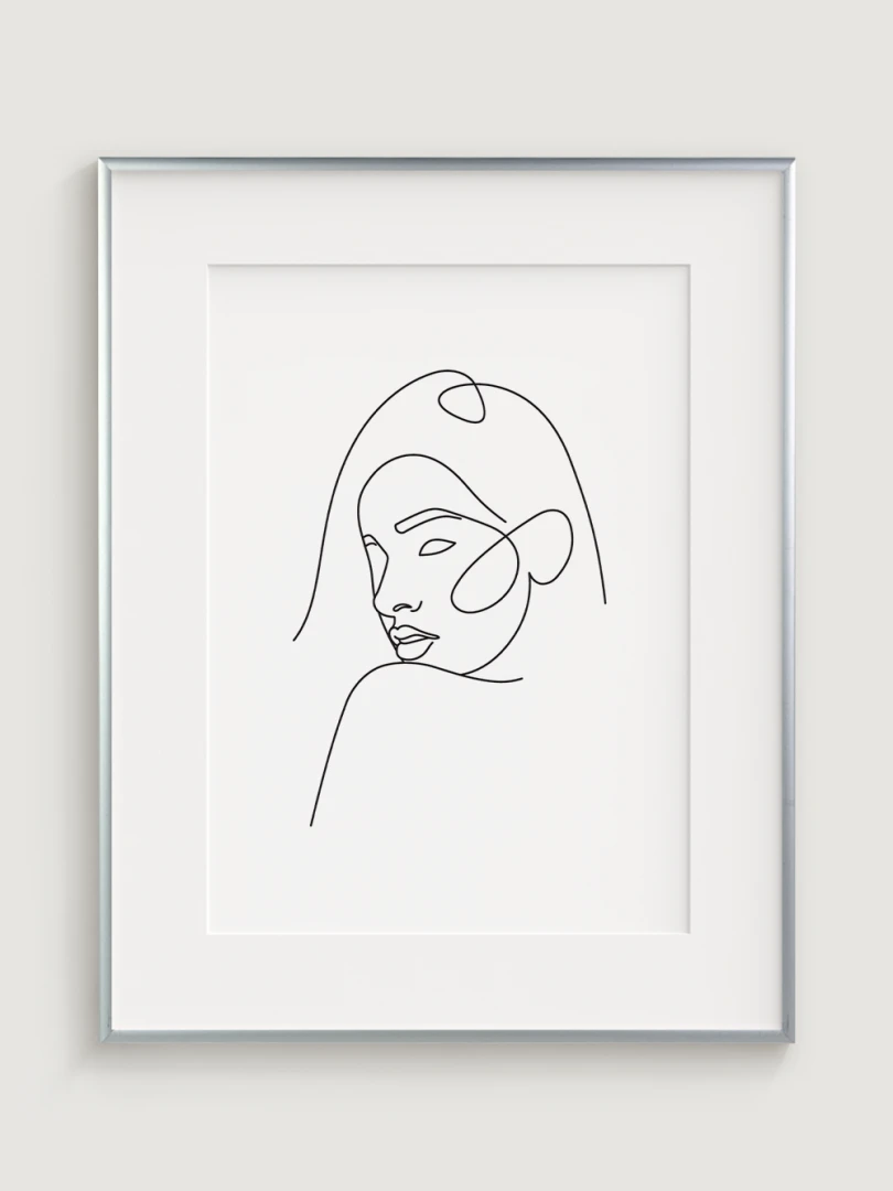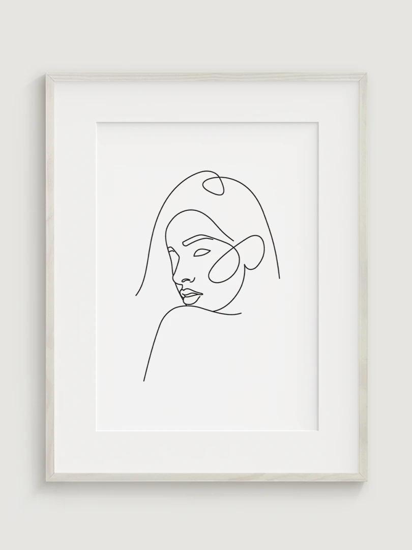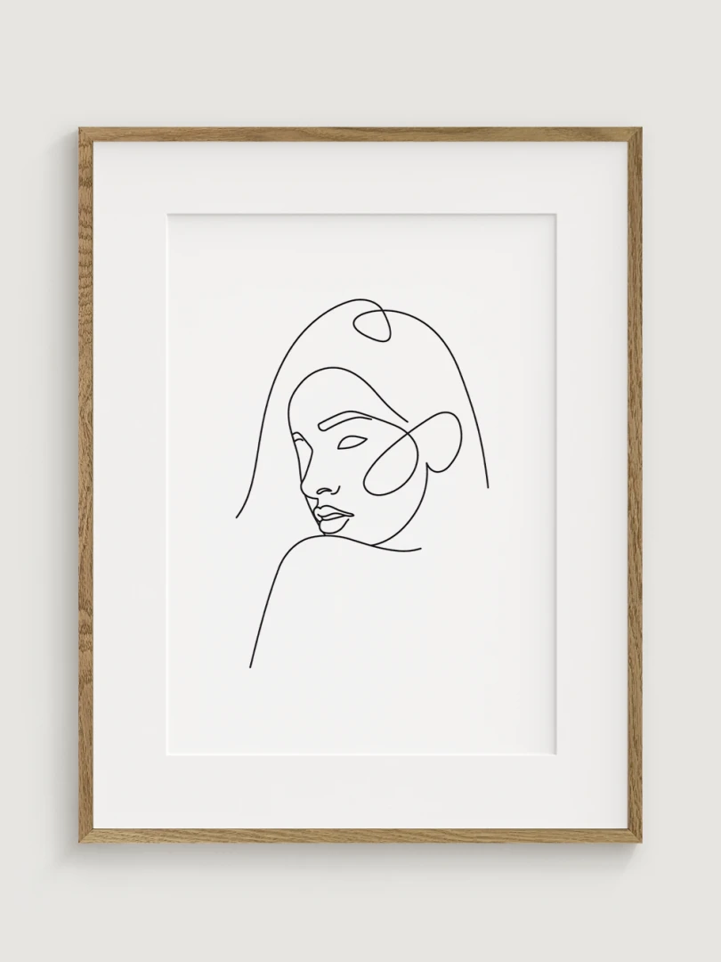 Tento print je ideální pro milovníky minimalismu a moderního designu, kteří hledají umění, které je současně subtilní a výrazné. Ilustrace zobrazuje klidnou, ale výraznou tvář ženy, čímž dodává elegantní a klidný element do jakéhokoli prostoru.