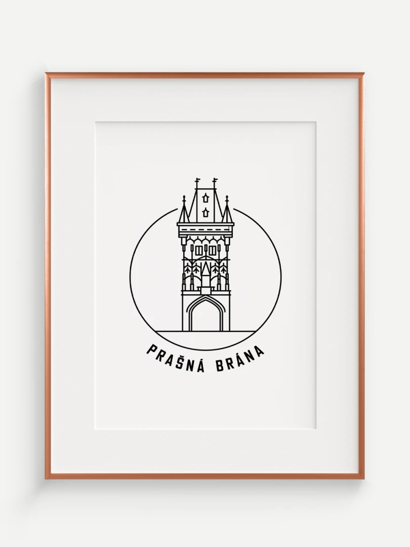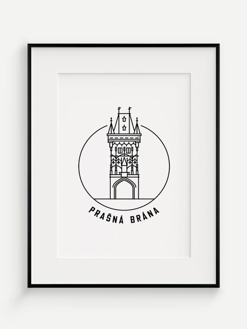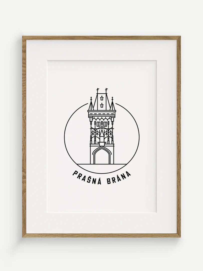 Tento print představuje stylizované, minimalistické zobrazení Prašné brány v Praze, gotické stavby, která spojuje středověkou krásu s moderním pohledem na architekturu. Vytvořen jemnou černou linkovou kresbou na kvalitním papíře, tato ilustrace zachycuje detailní linie a formy brány v nadčasovém a elegantním stylu.