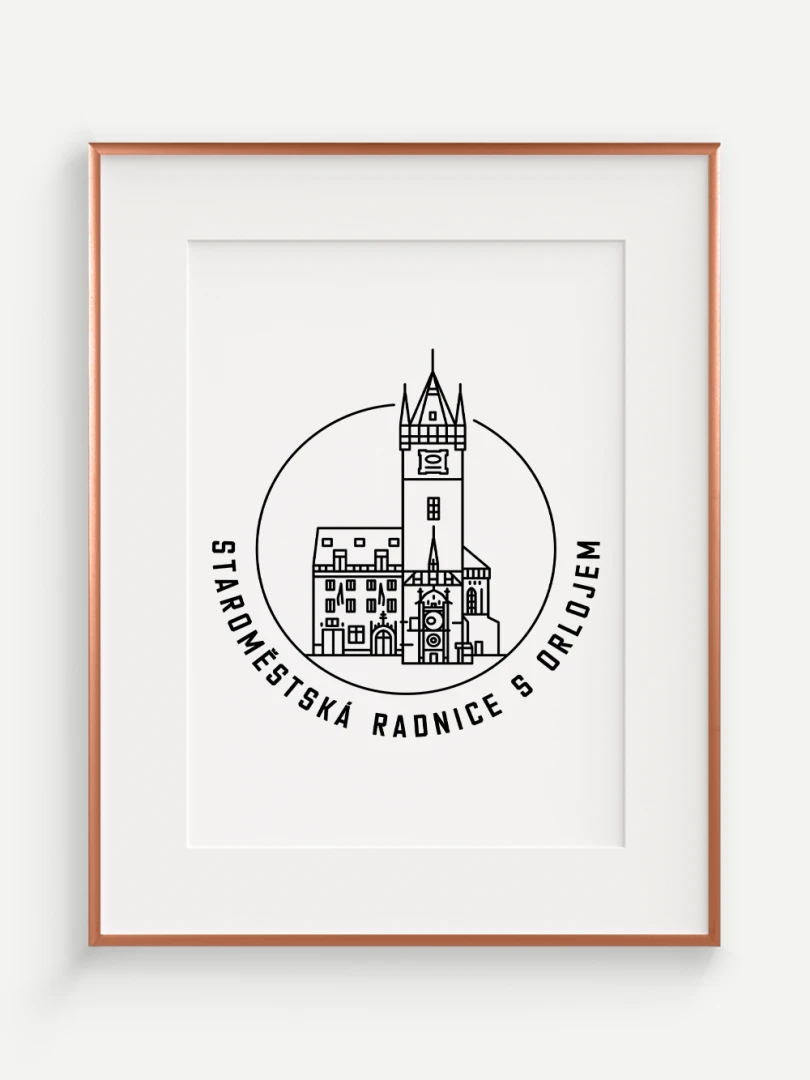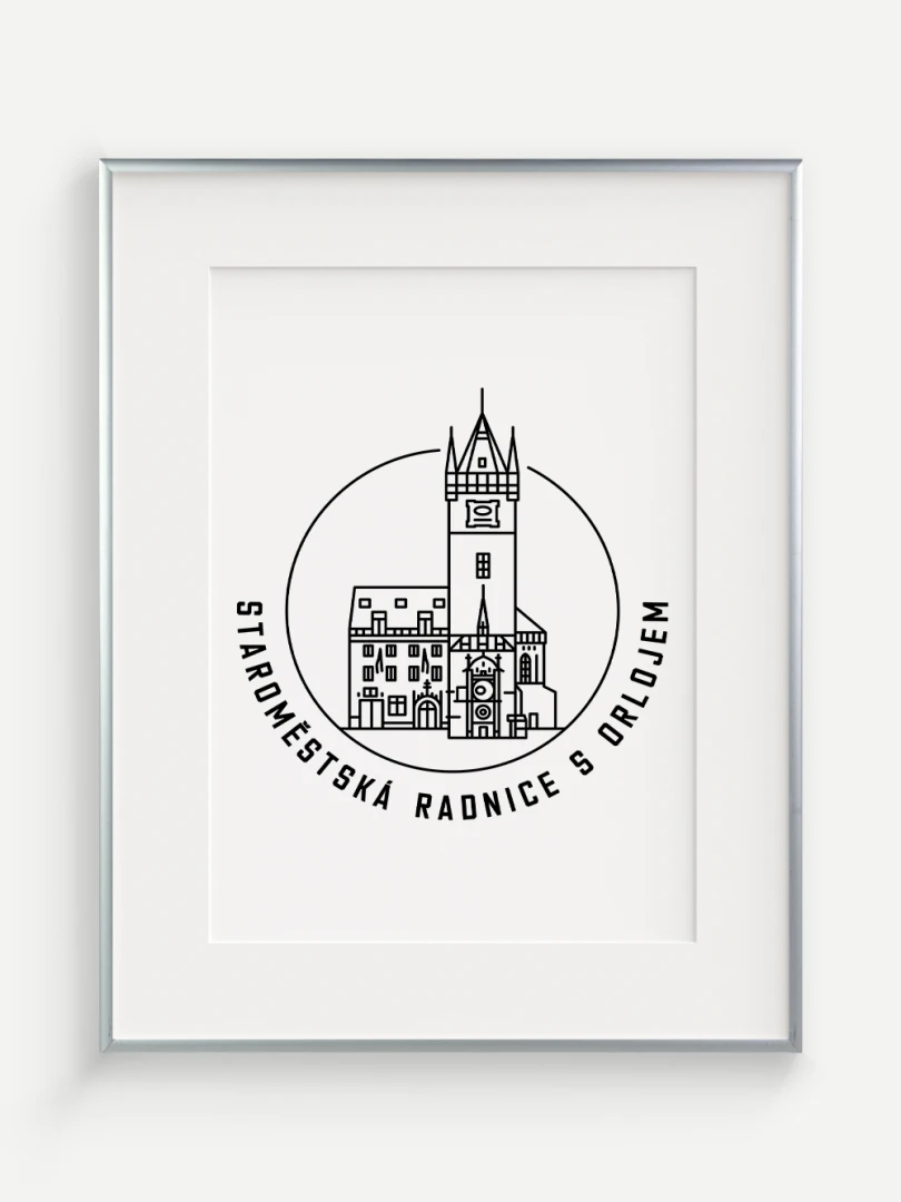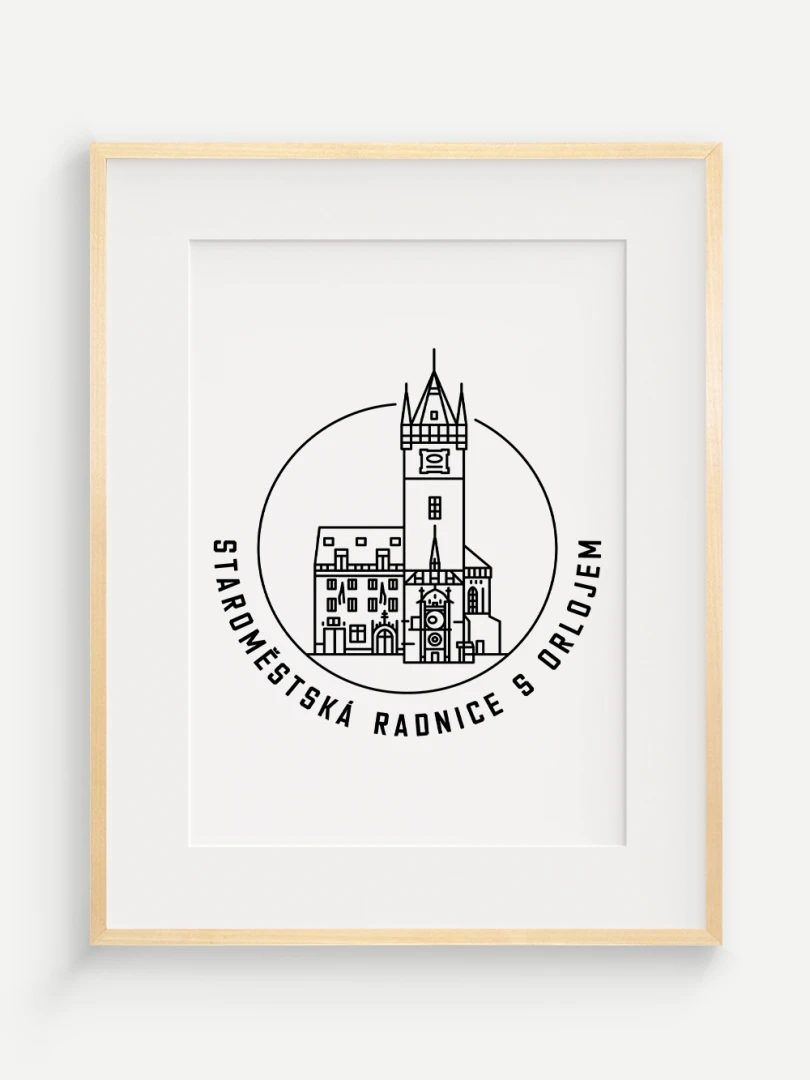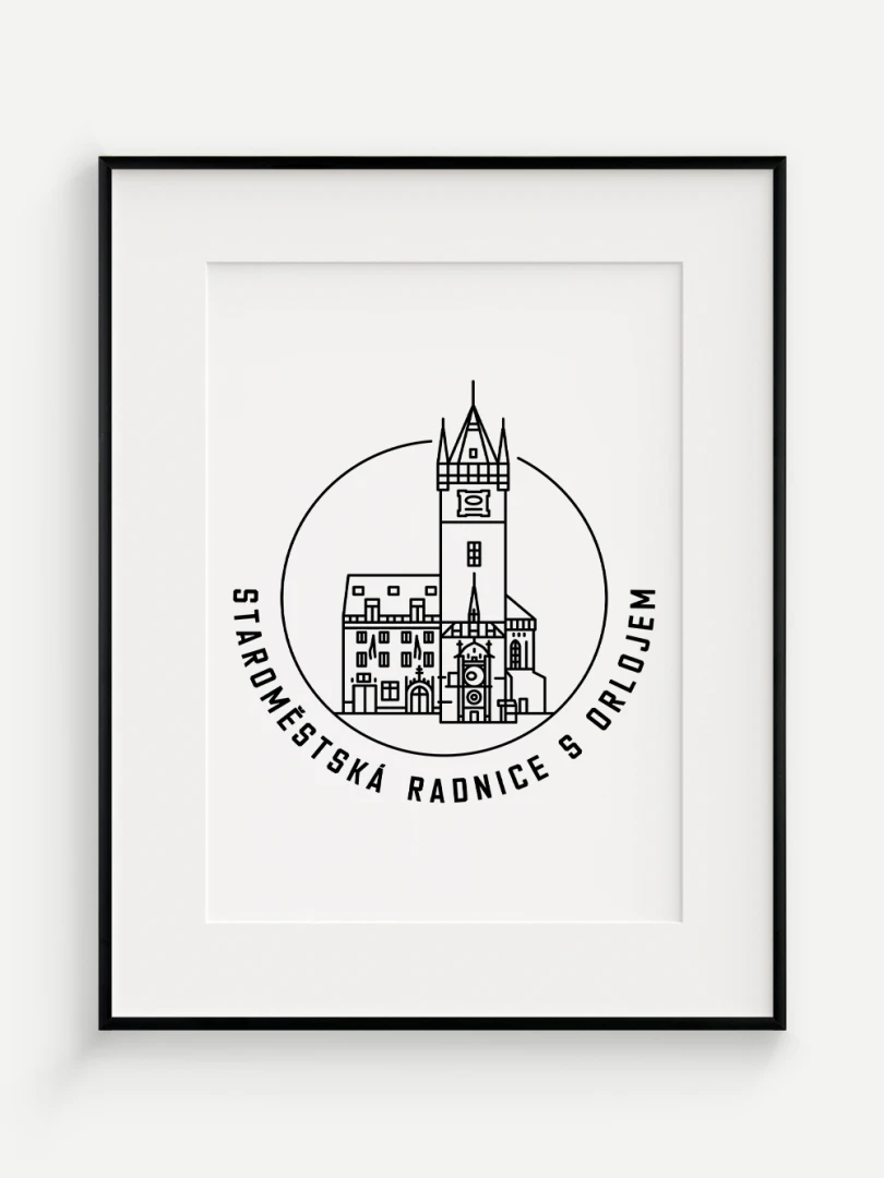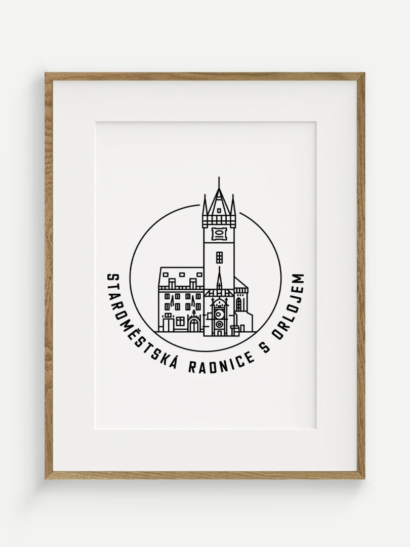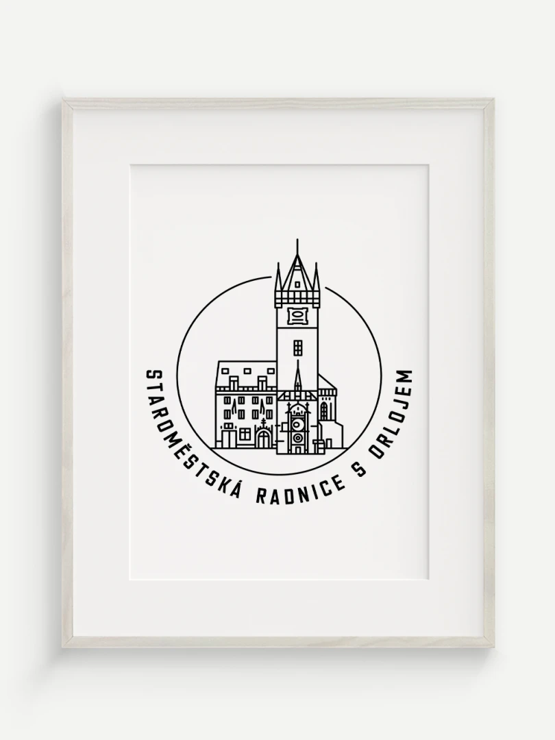 Tento print představuje stylizované, minimalistické zobrazení Staroměstské radnice s orlojem v Praze, budovy, která spojuje středověkou krásu s moderním pohledem na architekturu. Vytvořen jemnou černou linkovou kresbou na kvalitním papíře, tato ilustrace zachycuje jemné linie a historické detaily radnice a orloje v nadčasovém a elegantním stylu.